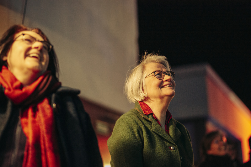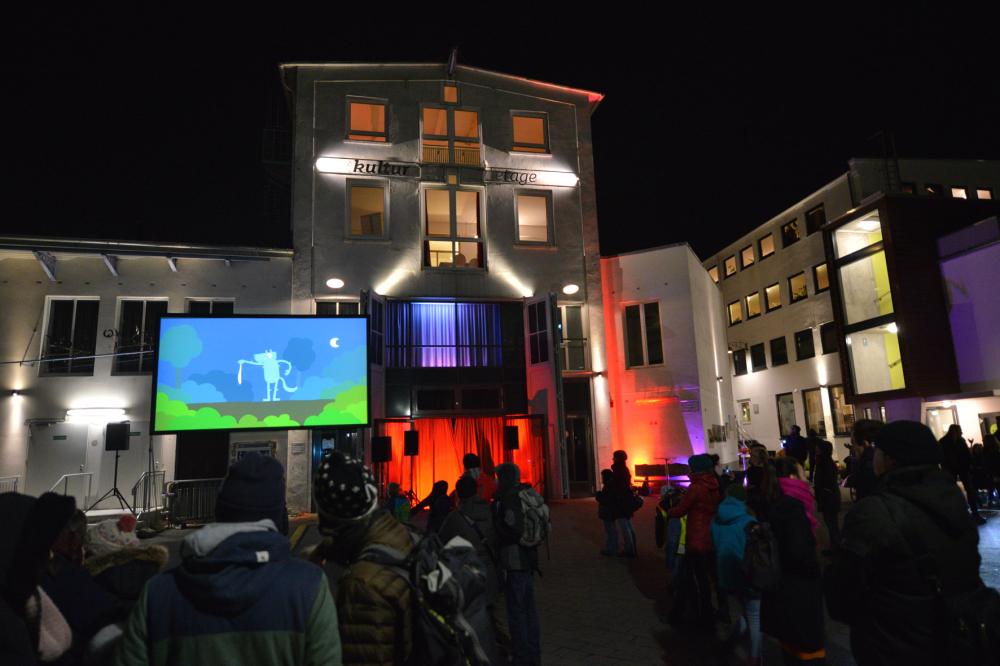 Premiere für den nachdenk:PLATZ bei winterlichen Temperaturen und vorweinachtlichem Gemüt. Jenseits digitaler Netzwerkkultur inszeniert der nachdenk:PLATZ alle wichtigen Zukunftsthemen und somit das „Herzblut“ einer jungen Generation auf kreative Art und Weise. Mittels einer Videoinstallation werden Sorgen und Bedürfnisse sowie politische Forderungen, aber auch weltverbessernde Ideen von jungen Menschen auf die Fassade der Kulturetage projiziert und somit einer breiten Öffentlichkeit zugänglich gemacht.