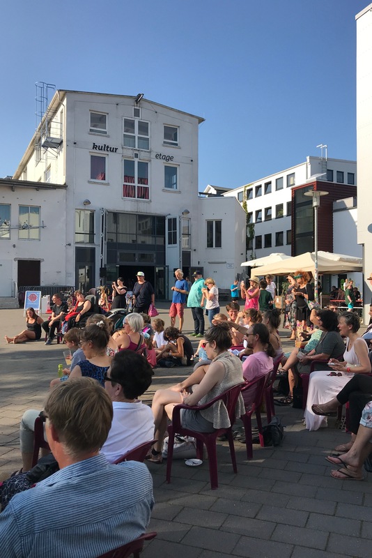 Um den grauen Parkplatz hinter der Kulturetage an einem Tag inklusiv und bunt zu gestalten, treffen sich Menschen rund um das Oldenburger Bahnhofsviertel aus Projekten und Initiativen, um Künstler*innen aufzuspüren und aktive Unterstützer*innen zu gewinnen. Gemeinsam mit dem Blauschimmel Atelier e.V. laden wir am 31. August zum leckeren und musikalischen Miteinander auf dem Kulturplatz ein — frei nach dem Motto: „Platzda! Gemeinsam im Quartier“.