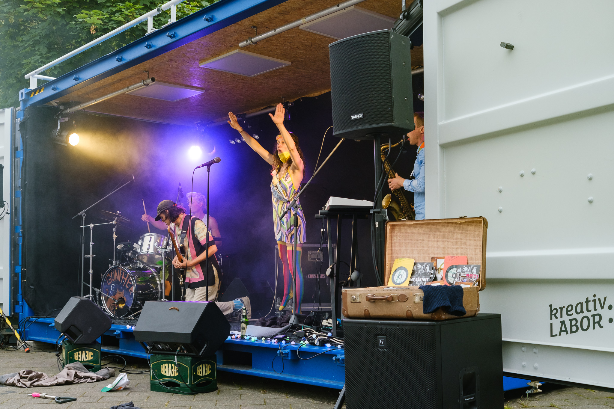 Drei Monate lang schaffen wir gemeinsam mit dem Cine k Oldenburg und dem Medienbüro e.V. auf dem neuen Kulturplatz Raum für Kunst, Kultur und Zukunftsfragen. Gefördert durch „Niedersachsen dreht auf!“ der Oldenburgischen Landschaft starten im Juni vier Containerkonzerte von und mit selbständigen Künstler*innen. Der Juli steht im Zeichen der Plattform fem:POWER mit Lesungen, Theater, Konzerten und einen Graffiti Workshop. Zum Abschluss gibt es einen Kreativmarkt in Kooperation mit Handgemacht Oldenburg und am Wochende Open-Air-Kino.